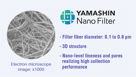 When used for air filters, YAMASHIN NANO FILTER™ helps provide clean air in daily life to reduce the risk of health damage.