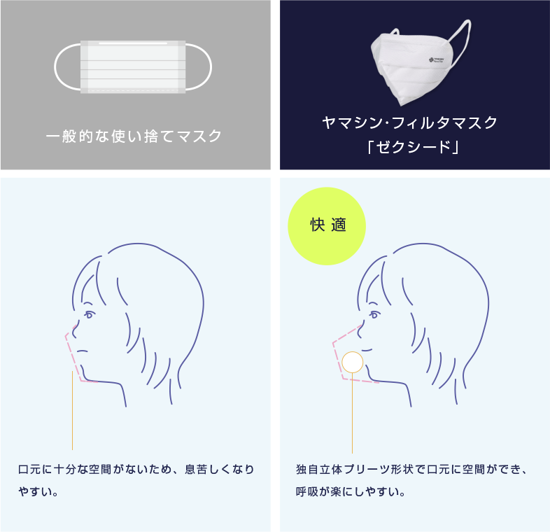 さらに独自立体プリーツ形状sup{※4}により、高密閉性と自然な呼吸のしやすさを両立。